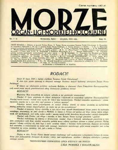 [8] (ba), „Polska nie może istnieć inaczej, jak tylko w mocnem oparciu o własne wybrzeże morskie”, „Morze”, nr 3/1933, str. 2-3